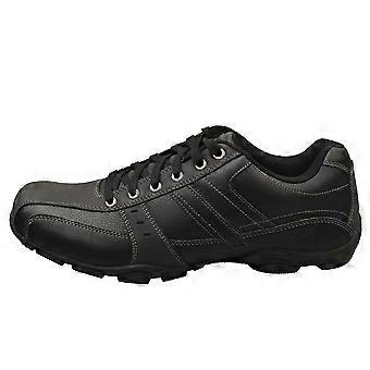 These Skechers MARTER trainers in sleek black offer a perfect blend of style and comfort. Crafted from a durable combination of synthetic and leather materials, they feature breathable textile linings and insoles for all-day wearability. The classic lace-up fastening ensures a secure fit, while the rubber sole provides excellent traction on various surfaces. Whether you´re running errands or enjoying a casual day out, these trainers are your go-to choice for effortless style and lasting comfort.