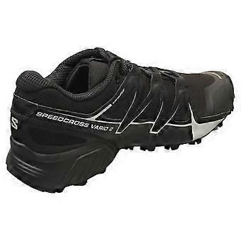 The Salomon Speedcross Vario 2 in Black Silver is a men´s running trainer built for performance and durability. The combination of synthetic and textile materials offers both flexibility and support, while the textile lining and insole ensure a comfortable fit. A robust rubber sole provides excellent grip on varied terrain. With classic lace-up fastenings, these shoes deliver a secure and customizable feel.
