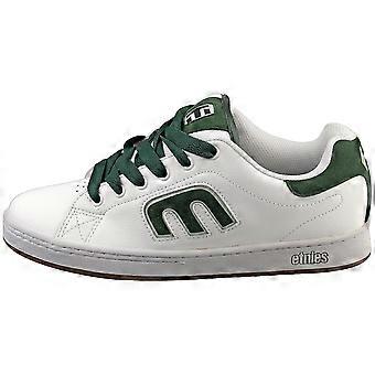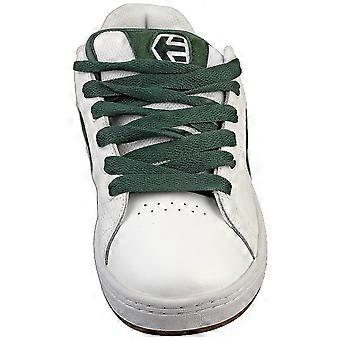 These Etnies Callicut trainers in a crisp white and vibrant green colourway offer a stylish blend of classic skate style and modern comfort. Crafted from a combination of durable leather and synthetic materials, they feature textile linings and insoles for a breathable and cushioned feel. The robust rubber soles provide excellent grip and traction, perfect for navigating the streets or hitting the skate park. Lace-up fastenings ensure a secure and adjustable fit.