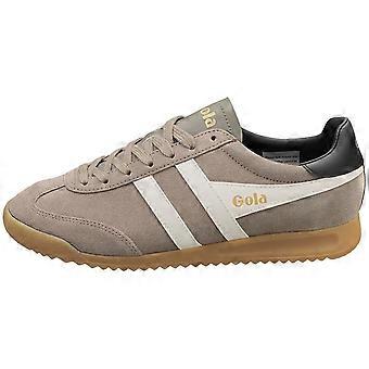 The Gola Torpedo in Rhino Off White is a classic fashion trainer for men. Crafted from premium suede, these shoes offer a timeless look with their understated off-white color and sleek silhouette. The comfortable textile and synthetic linings ensure all-day wearability, while the durable rubber sole provides reliable grip on various surfaces. Secure lacing allows for a personalized fit, making these trainers perfect for both casual outings and adding a touch of retro style to your everyday wardrobe.