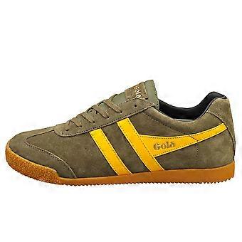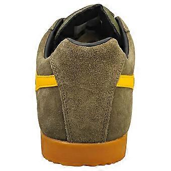 The Gola Harrier trainers in Khaki Sun offer a timeless style with modern comfort. Crafted from premium suede, these classic trainers feature breathable textile and synthetic linings for optimal wearability. A durable rubber sole ensures dependable traction, while the lace-up fastening allows for a secure and personalized fit. These versatile shoes are perfect for adding a touch of understated cool to any casual outfit.