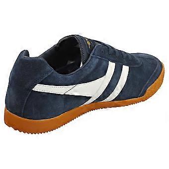 These classic Gola Harrier trainers offer a timeless look with a modern twist. Crafted from premium suede in a sleek navy and white colour combination, they exude both style and sophistication. The textile and synthetic linings ensure comfort, while the textile insoles provide cushioning with every step. With durable rubber soles for reliable grip and lace-up fastening for a secure fit, these trainers are perfect for everyday wear.