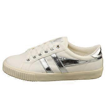 These Gola Tennis Mark Cox trainers are a stylish addition to any wardrobe. Crafted with a combination of textile and rubber materials in an off white silver colourway, they offer both comfort and contemporary flair. The classic lace-up fastening ensures a secure fit, while the textile linings and insoles provide breathable cushioning. Whether you´re dressing up or down, these trainers effortlessly elevate your look with their timeless design.