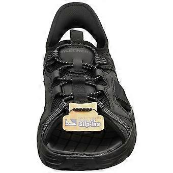 These Skechers Men´s Slip-Ins Revolted SS walking sandals in black are the epitome of casual comfort. Crafted from a blend of textile and synthetic materials, they offer both breathability and durability. The textile lining and synthetic insole provide a soft and supportive feel underfoot, while the durable rubber sole ensures reliable traction on various surfaces. Simply slip them on for effortless style and all-day ease.