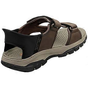 Slip into effortless style and comfort with these Skechers TresMen Reece walking sandals. Crafted in a rich chocolate synthetic upper, they offer breathable textile linings for ultimate foot comfort. The supportive synthetic insoles and durable rubber soles provide excellent cushioning and traction for all-day wear. A convenient strap fastening ensures a secure fit, making these sandals perfect for everyday adventures or leisurely strolls.