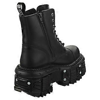 New Rock´s M-TANK083-C1 platform boots exude a timeless cool in classic black leather. The rich texture of the leather upper is beautifully complemented by supple leather linings for a luxuriously comfortable feel. Every step is supported by durable rubber soles, while synthetic insoles provide added cushioning. Lace-up fastenings allow for a secure and personalized fit, making these boots perfect for any bold individual who embraces both style and comfort.