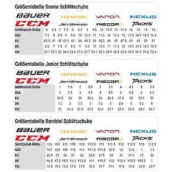 The BAUER Vapor Fly40 Bambini skates are specially designed for the smallest ice hockey players and offer a perfect blend of stability, comfort and ease of use. The Digi Comp outer material ensures good energy transfer and durability. The Youth Pro Stock 30oz tongue in combination with the sublimated inner material with Comfort Edge offers high wearing comfort. Thanks to Motion Flex, forward movement is easier and more child-friendly, which supports learning the right technique. The stainless steel blade and the LS Pro II holder ensure reliable grip on the ice. The sporty design with yellow accents completes the look. Features:Construction: VAPORAuerity: Digi CompOutsole: Digi CompInner material: Sublimated with Comfort EdgeTongue: Youth Pro Stock 30ozToe cap: StandardThermoformable: MoldableFacing Flex: Motion FlexAnkle Padding: Memory Foam Holder: LS Pro IIConder: Stainless Steel BladeDesign: Sporty design with yellow elementsThe Bauer Vapor Fly40 Bambini skates make it easy to get started in ice hockey - safe, comfortable and performance-oriented.