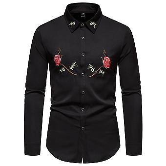 YOUTHUP Mens Embroidered Rose Shirt Casual Long Sleeve Slim Tops