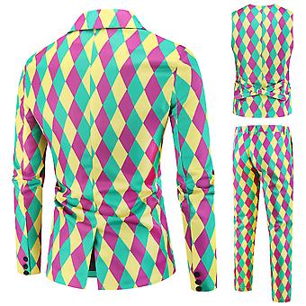 YOUTHUP Mens 3 Piece Suit Argyle Stripe Single Breasted Holiday Dress for Dinner or Party
