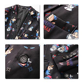 Youthup Mens Christmas Santa Claus Elk Print Slim Fit Suit Blazer