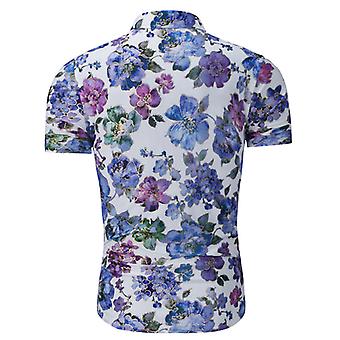 Youthup Mens Short-sleeved Flower Print Button Shirt