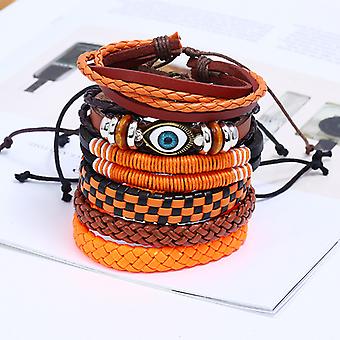 Size: 17-18CM Material: cowhide, alloy, PU, hemp ropeCrafts: Pure handmadeStyle: FashionQuantity: 6pcs/setShooting in natural light, due to different monitors and other reasons, the color you see on the picture might be diffient. _x000D_Natural cowhide material with its own leather flavor. Unwrap the package and let it go for a few days, and the smell dissipates. Keywords: Eye pattern retro multi-layer edaret braceletEye pattern multi-layer woven cowhide braceletEye pattern men´s multi-layer leather braceletEye pattern men hand-woven braceletsEye pattern woven cowhide bracelet six-piece setSKU: NP0056Seller: E-Color
